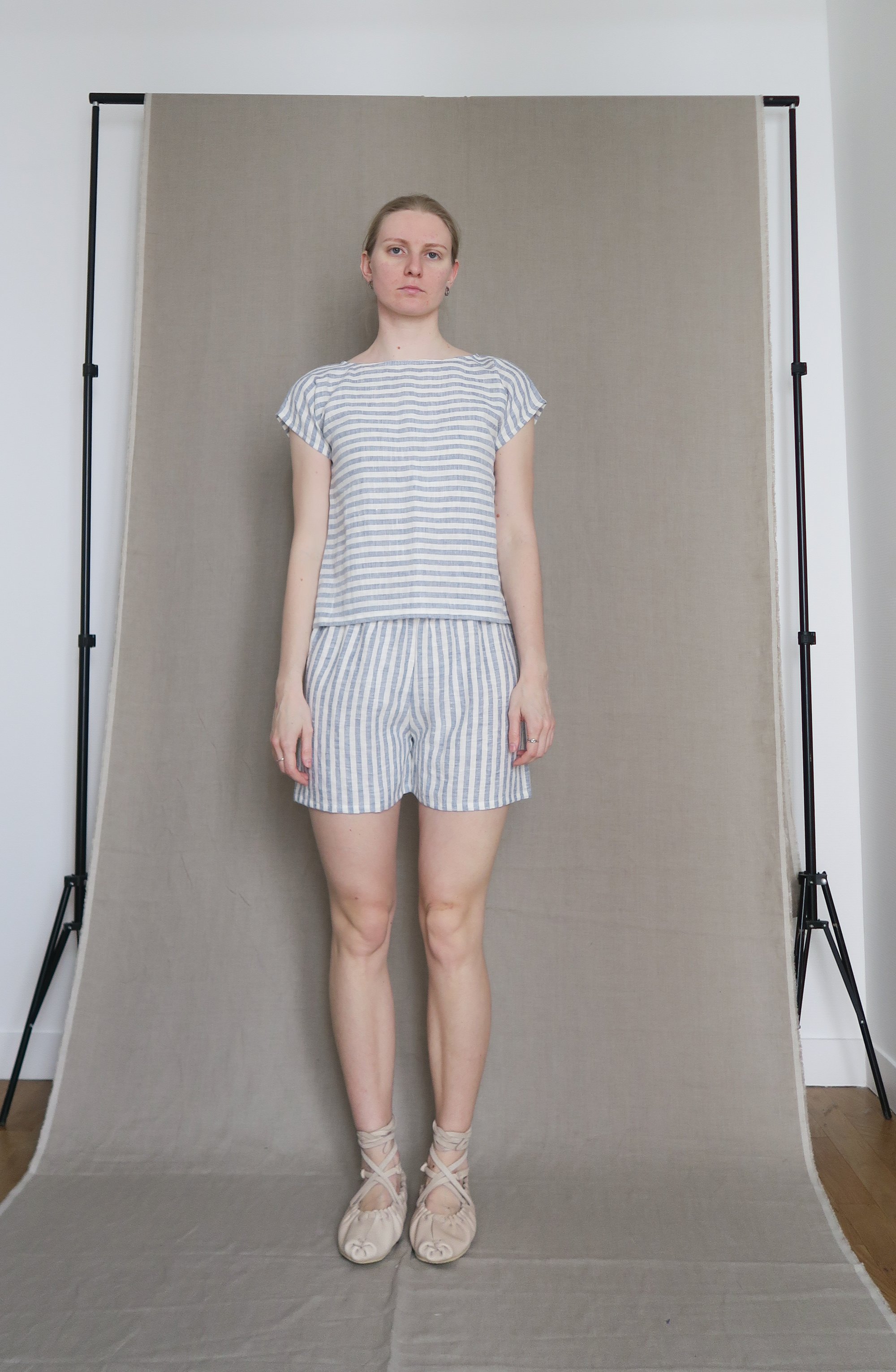 Super simple striped linen top for size Small, EU 36 - 38. Bust measure 90cm, length 56cm.